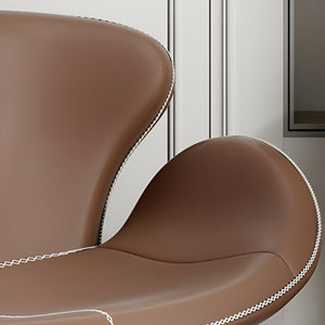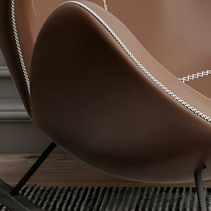 Featuring wide, open arms and ergonomic curves, this chair enhances both comfort and aesthetic appeal. The sleek metal legs add stability and a refined modern accent, balancing softness with structure. Upholstered in rich medium brown leatherette, it exudes warmth, sophistication, and timeless charm—making it a versatile choice for living rooms, executive offices, or reception areas.