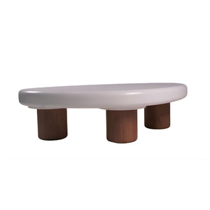 Crafted from high-density board with a premium paint process finish and accented by natural walnut veneer, the table showcases a sophisticated contrast of white and walnut brown tones. Its sleek, rounded silhouette reflects the essence of modern craftsmanship — simplicity, balance, and elegance in every detail.