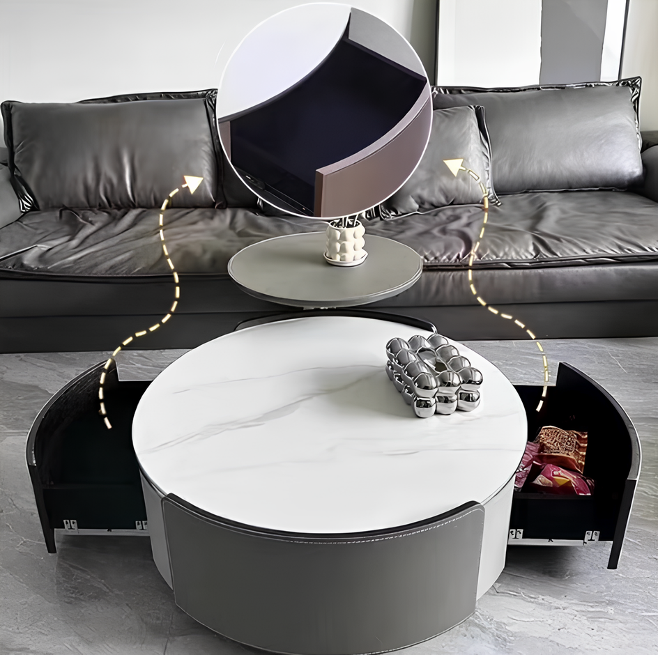 The Modern Center Table Set is a versatile statement piece designed to elevate contemporary living spaces. Combining sleek aesthetics with practical functionality, this set includes a spacious round coffee table and a pull-out side table, offering flexibility for entertaining, working, or showcasing décor.