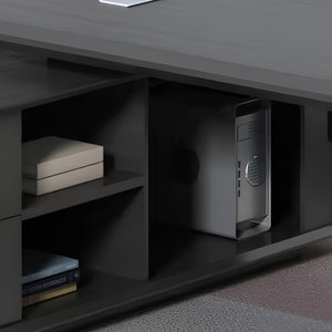 Expertly crafted from premium MFC (Melamine Faced Chipboard), the desk ensures durability, easy maintenance, and a flawless finish. The matte black surface exudes elegance and authority, making it a perfect fit for executive offices or modern professional environments seeking understated luxury.