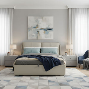 - Color (Bed | Side Table): Light Beige Leather | Light Grey