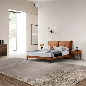 The bed is crafted from a robust wooden frame, ensuring lasting strength and stability. Generously padded with high-quality sponge and upholstered in premium leatherette, it offers a plush, inviting surface that balances comfort with modern style. Its clean lines and meticulous detailing create a sleek silhouette that anchors the space with understated luxury.