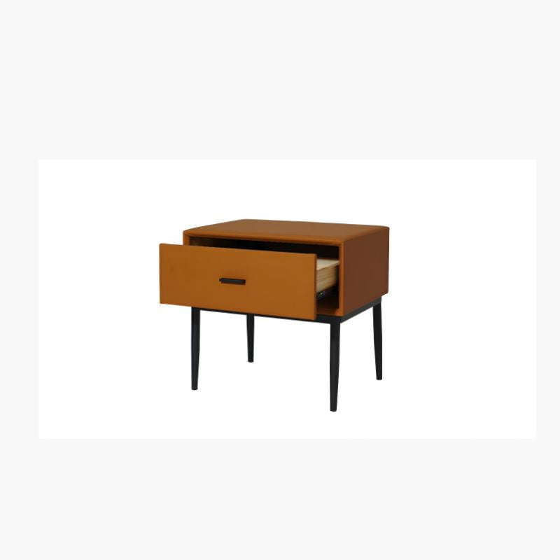 The Terracota Snoozia Bed with Side Table radiates warmth and sophistication, blending modern aesthetics with functional design. Its vibrant orange tone adds an energetic yet elegant touch, making it a striking centerpiece in any contemporary bedroom.