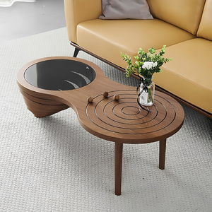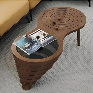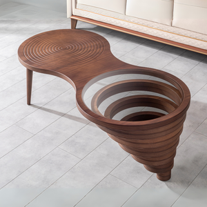 Crafted from high-density engineered board and wrapped in a natural walnut wood veneer, it exudes warmth, luxury, and enduring durability. At its core lies a vortex-inspired hollow, elegantly crowned with a tempered glass surface that combines practical usability with visual intrigue.